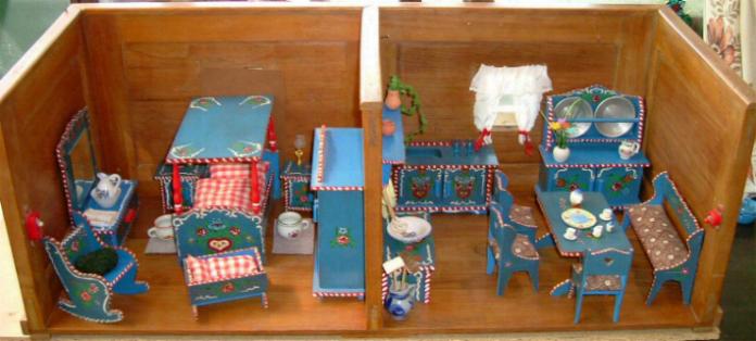Ich liebe diese Möbel, sie sind aus Bastelpackungen der Firma Knorr. Ich habe sie ganz alleine zusammengebaut, gestrichen und mit Bauernmalerei verziert, das zusammenbauen klappte super, aber Malen ist nicht meine Welt.