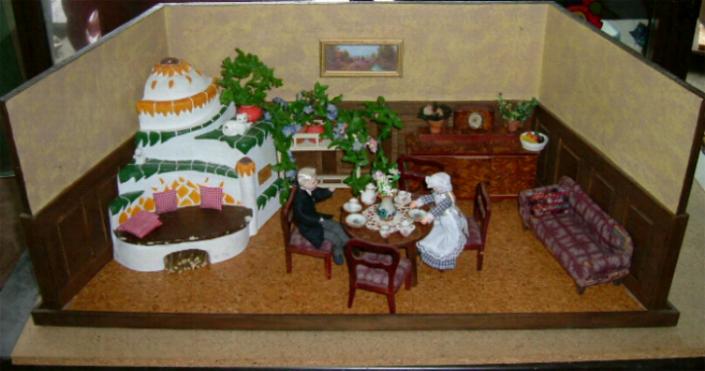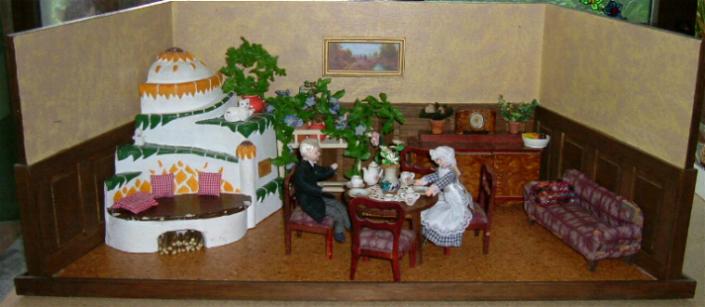 Dieser prächtige Kachelofen wurde mir als Geschenk aus Österreich mitgebracht, danke Evelyn. Der Miniofen ist sehr schwer und dient eigentlich als Muster für die Orginale. Passt er nicht super in meine Puppenstube.