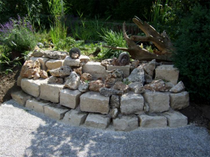 Eigentlich sind es nur angehäufte Steine, es sollte ein Eidechsenhügel werden. Vielleicht findet ja einmal eine Eidechse den Weg zu uns, der Hügel ist ja erst 1 Jahr alt und es wird Zeit brauchen bis sie unseren Garten bevölkern. Wir haben viele unaufgeräumte Ecken, sie müssten sich hier wohl fühlen.